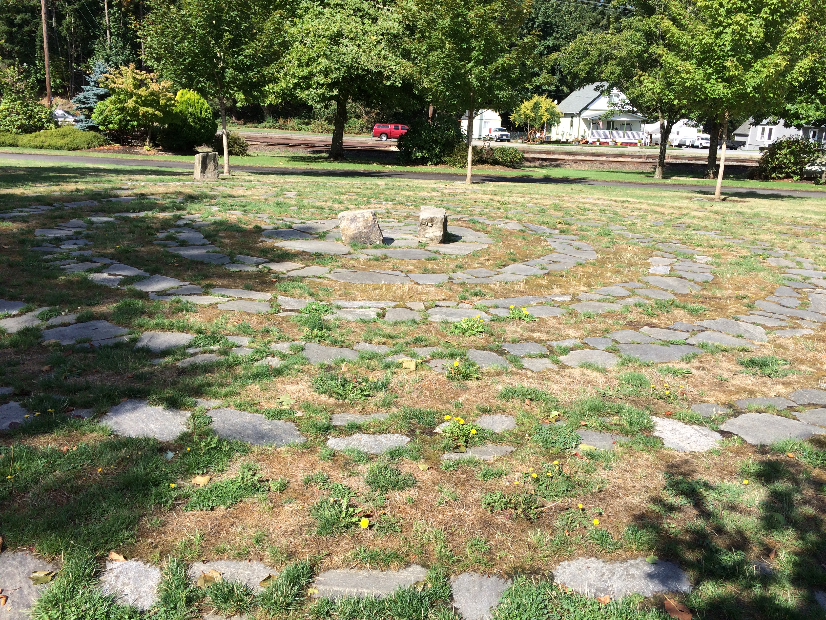 The path I walked the other day was distinct and easy to follow, although somewhat circuitous. I wish my path through life would be as clear. Sometimes that path seems to go through brambles and is not very well lit. But that day the sun was shining as four of us walked the labyrinth in Arlington. As soon as I stepped onto the flagstones inlaid in the grass, I knew the journey would be meaningful. I relaxed, took a deep breath and walked. Many people mistake a maze for a labyrinth. In a maze one can get lost—like I do sometimes in my journey through life. A labyrinth has only one path to the center and one way out. The certitude of getting there (to the center) helped me to relax and focus on the steps along the way.