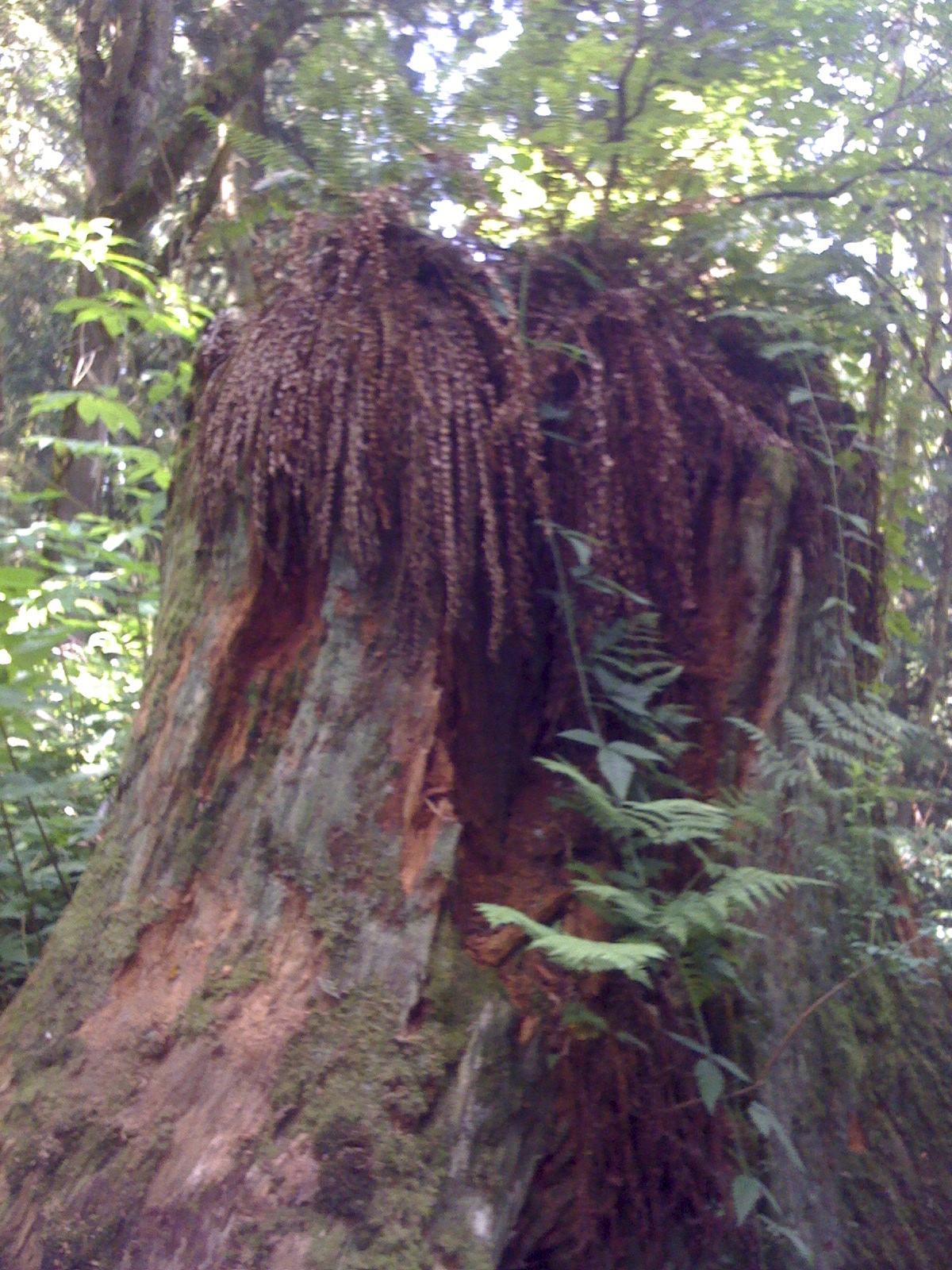 Standing before an enormous stump of an ancient tree, Alfred could see nothing unusual. He walked around it. Nothing. He walked around again. Noticing indents in the tree at eye level, he thought that maybe he could climb to get a look at the top. He put Elsie and the sheep in his pocket and stretched up to grab the indent. He hoisted himself up and found more indentations, almost like a ladder.